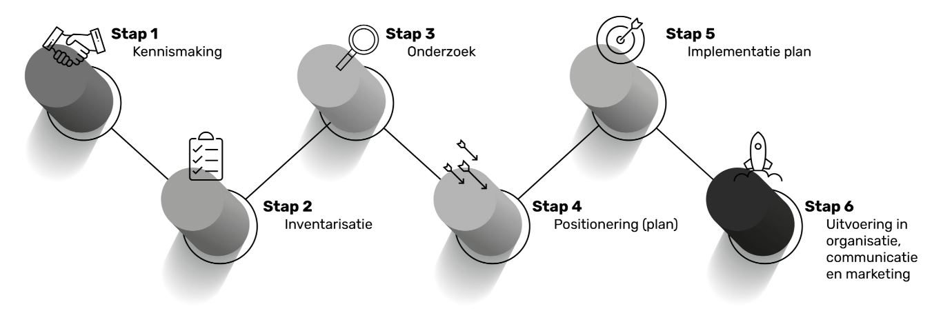 Wij schrijven aan de hand van de informatie die wij verkrijgen aan de hand van de bovenste 3 stappen een positioneringsplan. De basis hiervoor is een academische opleiding op het gebied van communicatie en business. Wij schrijven een positioneringsplan dat het fundament vormt voor de visie en toekomst van jou en je bedrijf. Samen met jou lopen we stap voor stap de bevindingen en uitkomsten door.